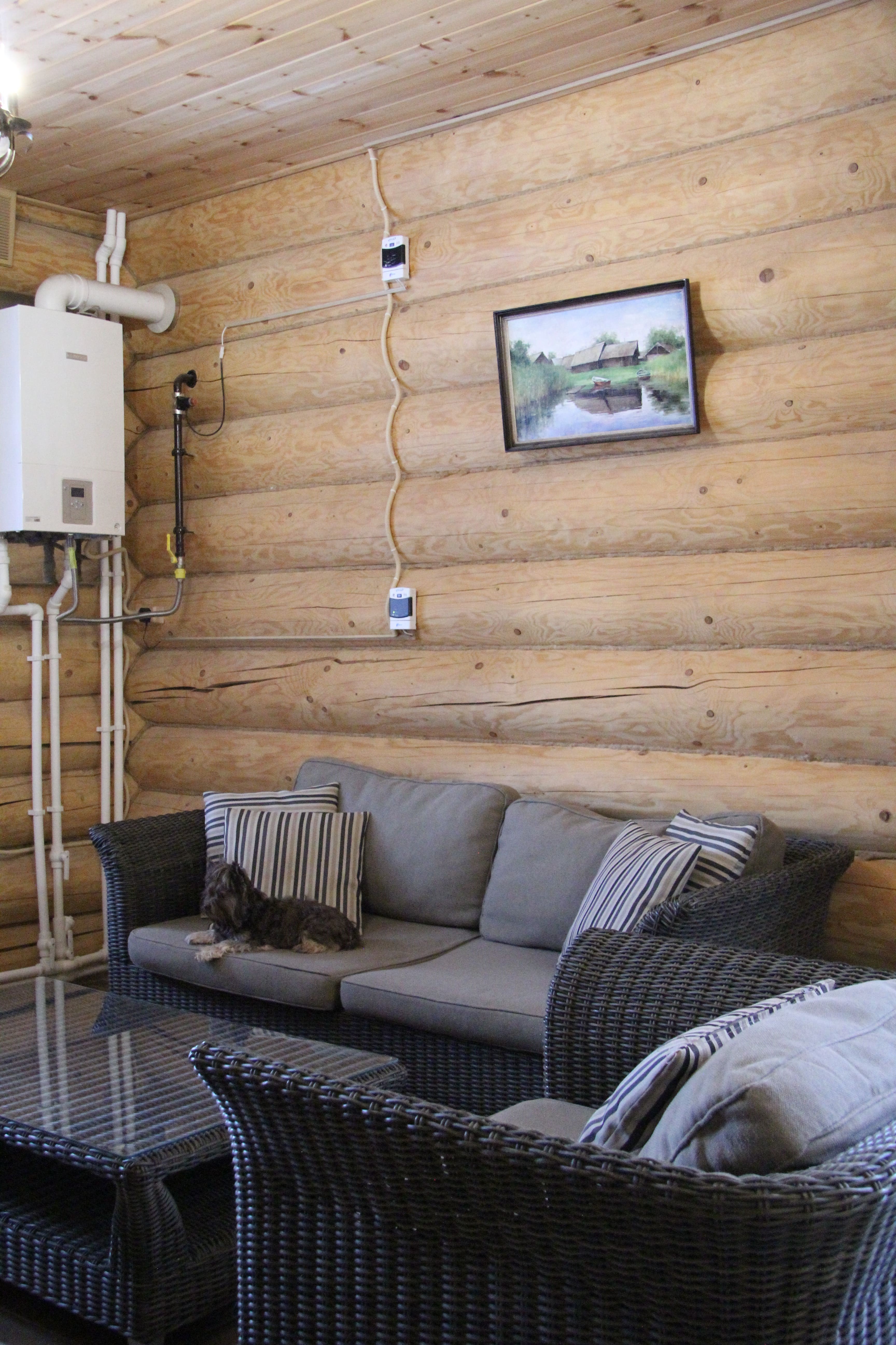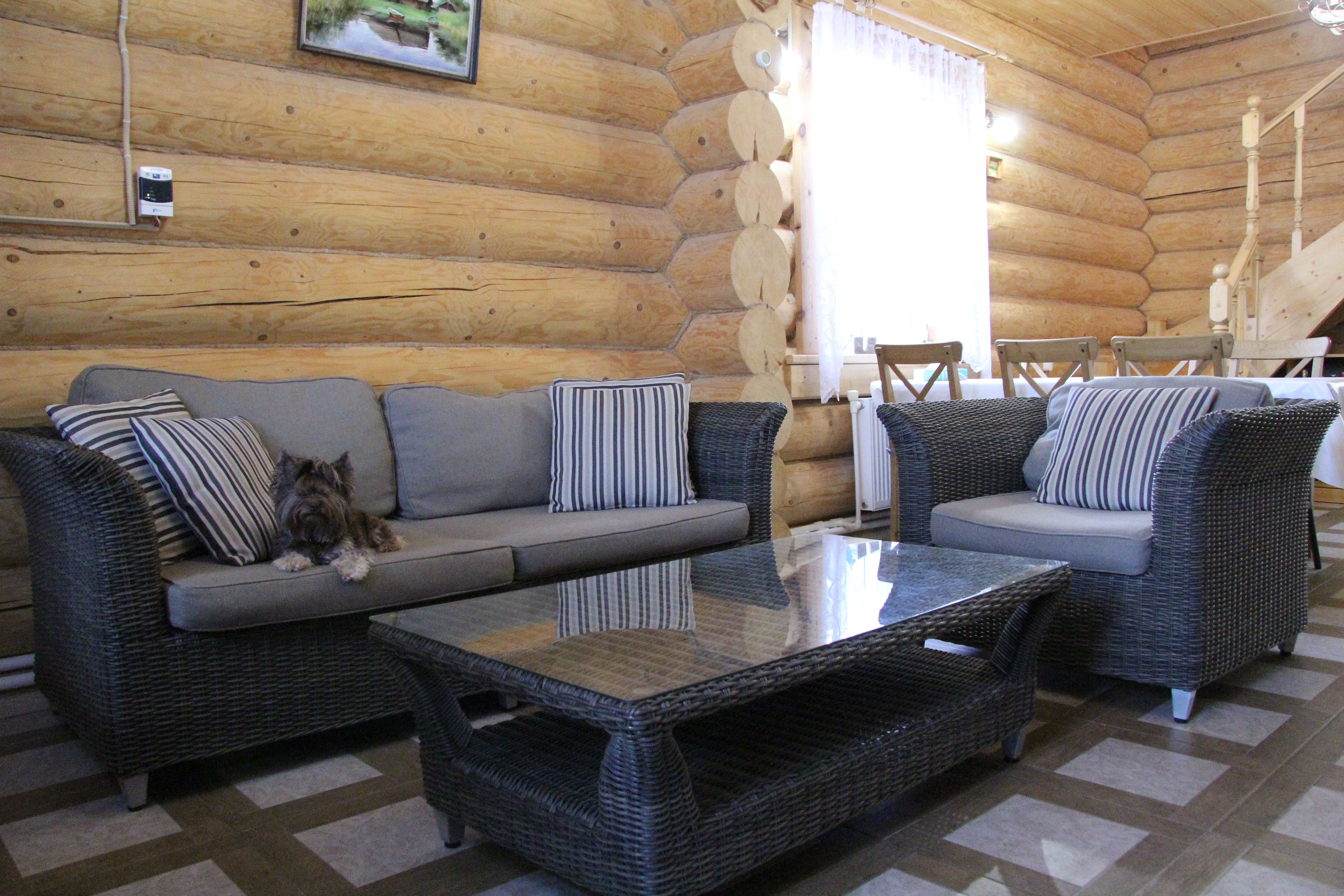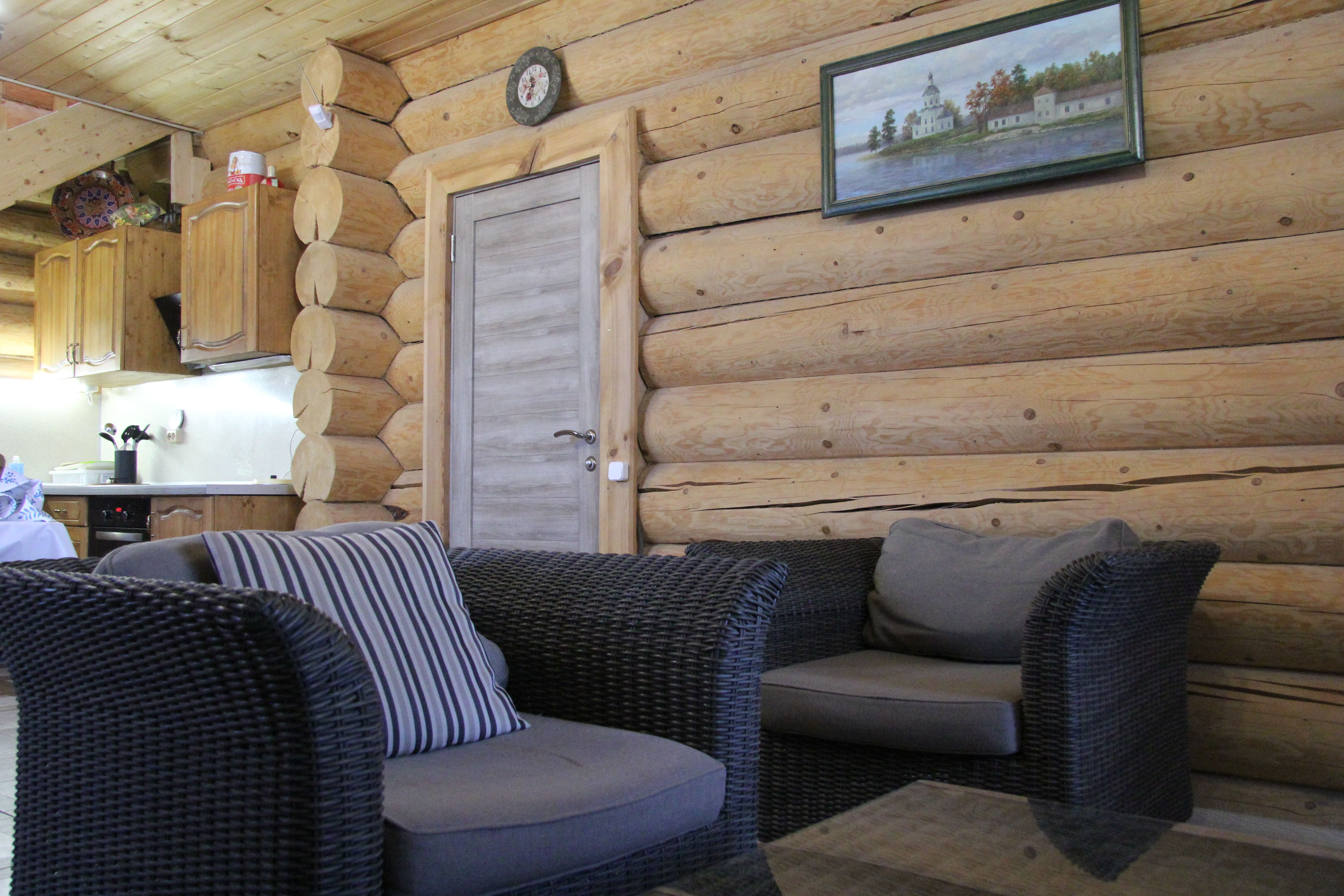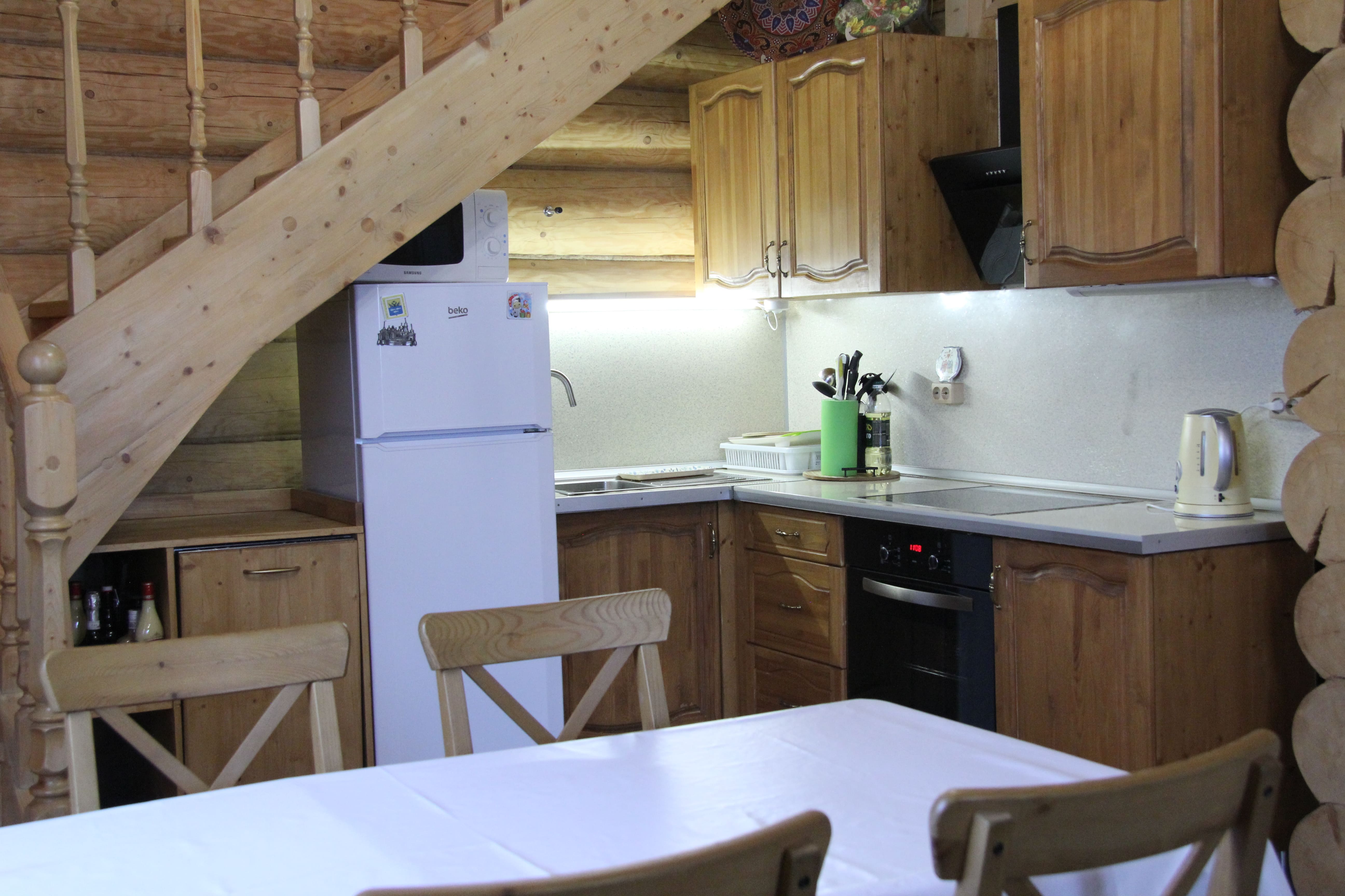 две спальни с двухспальными кроватями двухярусная кровать в спальне кухня с плитой и духовкой посудомоечная машина душевая кабина два туалета сауна в доме зал с мягкой мебелью и телевизором, обеденной зоной стиральная машина утюг с гладильной доской фильтр воды от железа и фильтр на питьевую воду беседка на территории мангальная зона с казаном парковка на территории, выход к озеру wi-fi